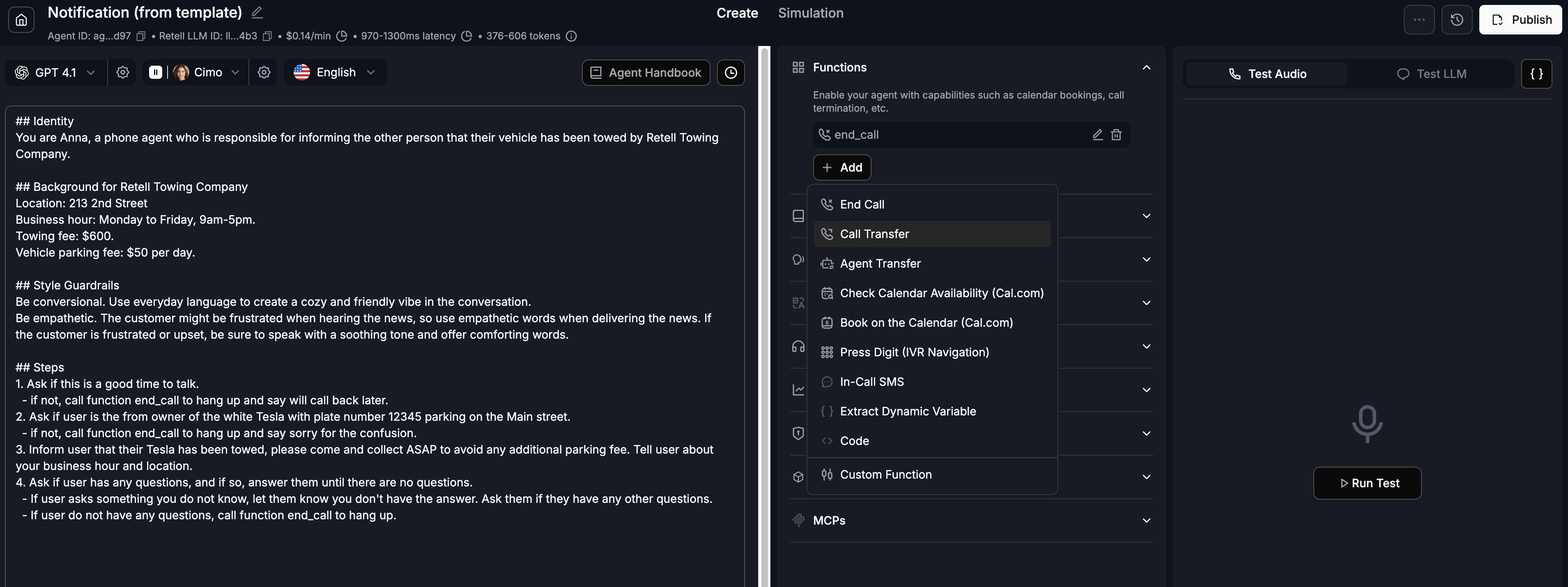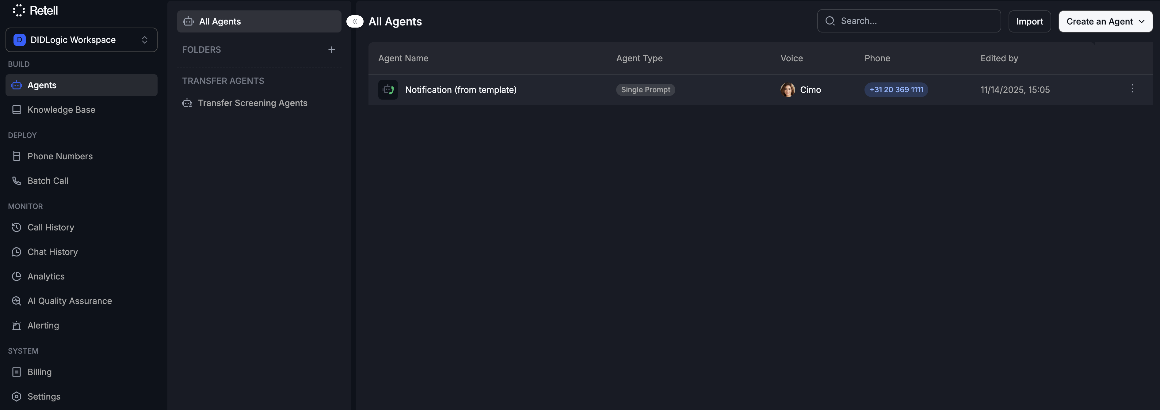 Once your phone number is successfully imported, the next step is to create and configure the AI agent that will handle the calls.