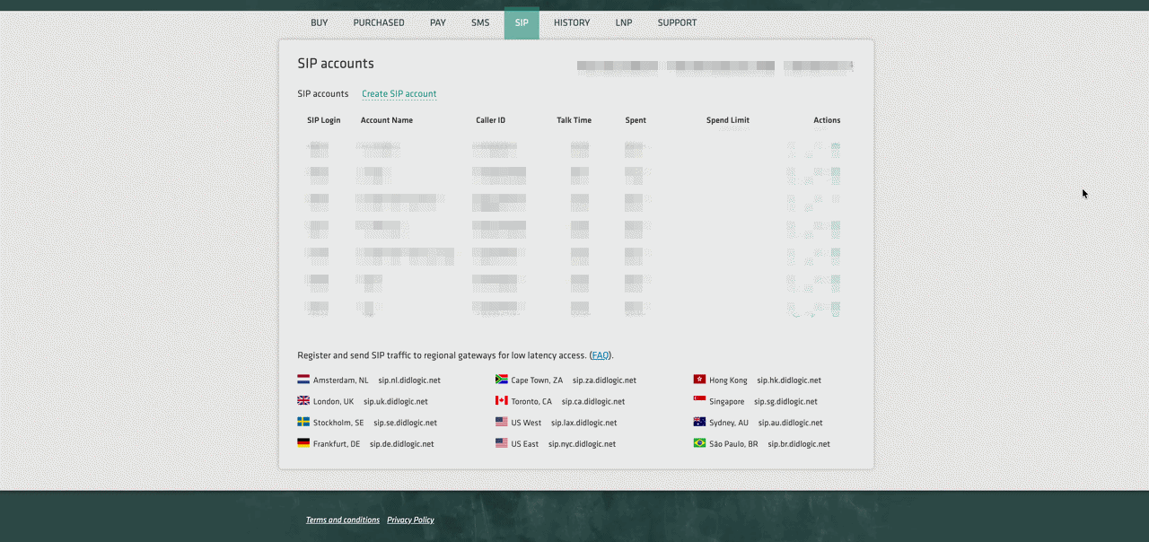 Once your balance is active, your next step is to create a SIP Account. In our ecosystem, a SIP account serves as your digital identity — it provides the credentials (username and password) that connect your hardware or software to our global network. You can manage these in the SIP Accounts section of your dashboard.